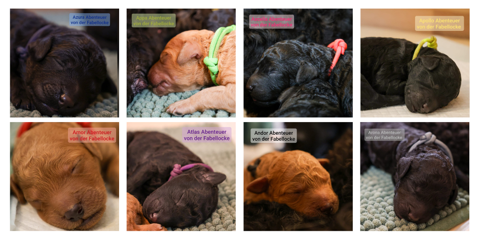 Die Welpen sind Mitte Dezember 2024 zu ihren Familien gezogen. Mehr Informationen zu unserer Welpenabgabe finden Sie hier.